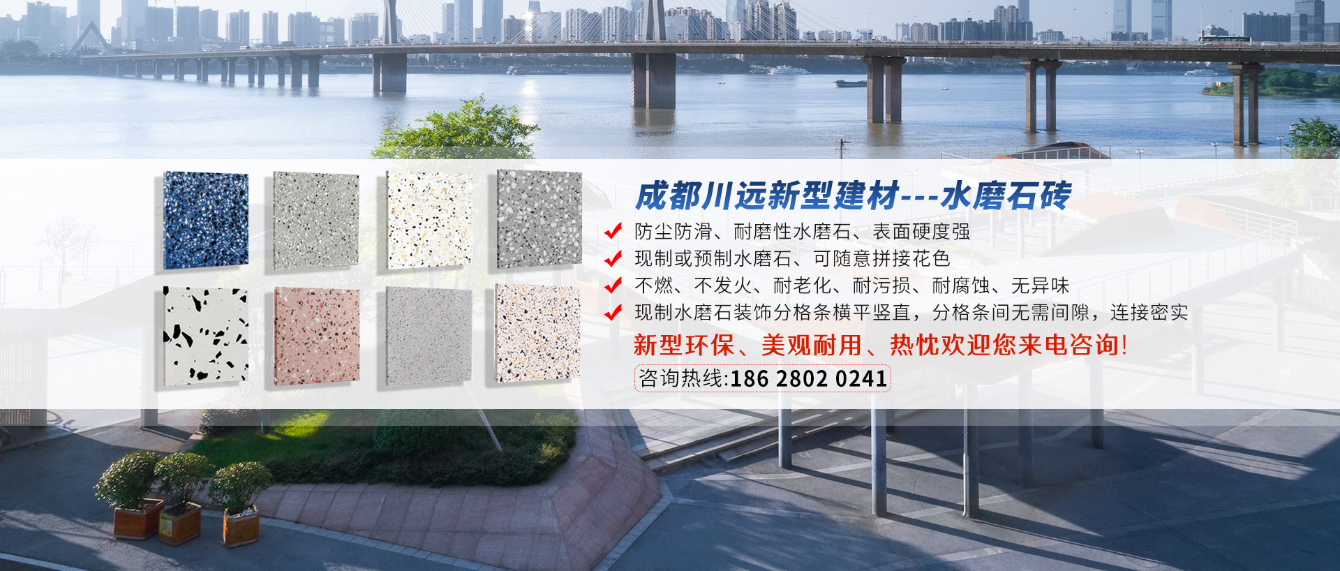 成都川遠新型建材有限公司是一家專業(yè)化生產經(jīng)營透水磚、pc磚定制,仿石材路沿石、水磨石磚的企業(yè)。擁有了面積達1000多平方的生產基地,多套完整的大、中型生產設備和眾多專業(yè)生產技術人員。本廠生產的各種型號等...